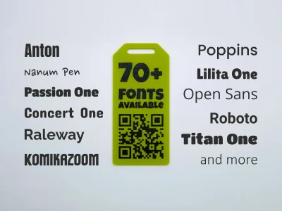 Please provide short text line you want to print on tag. Please check tag sizes picture to judge how many characters can be included for each size. You can include emoji in your text line. Also you can leave this field empty.