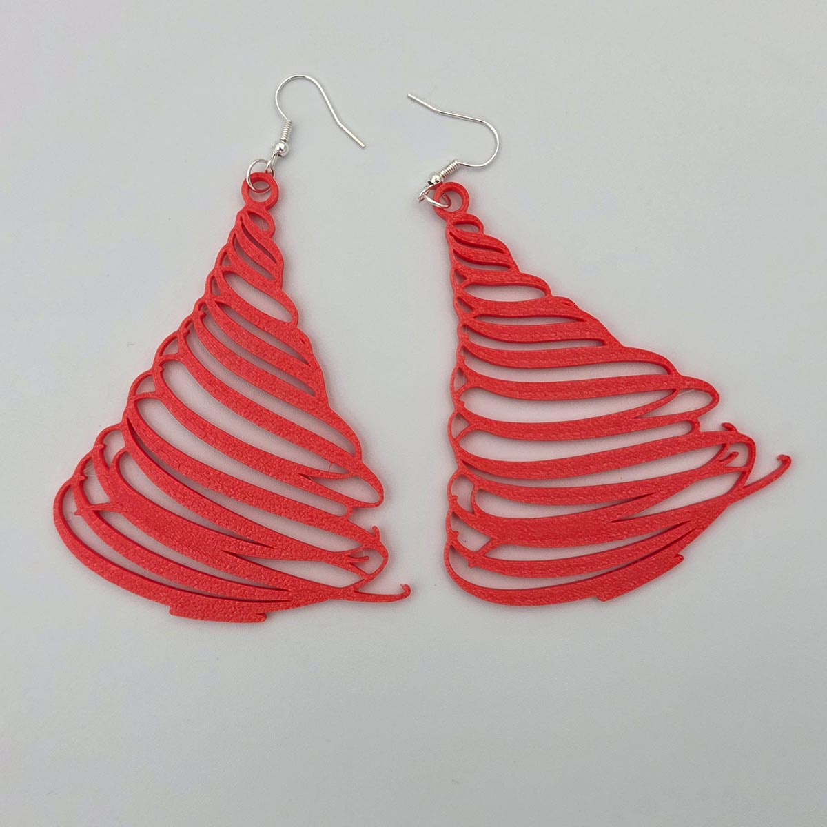 Lightweight and stylish 3D printed spiral earrings in a vibrant red. The modern, flowing design adds an artistic touch to your look, perfect for everyday wear or a special occasion.