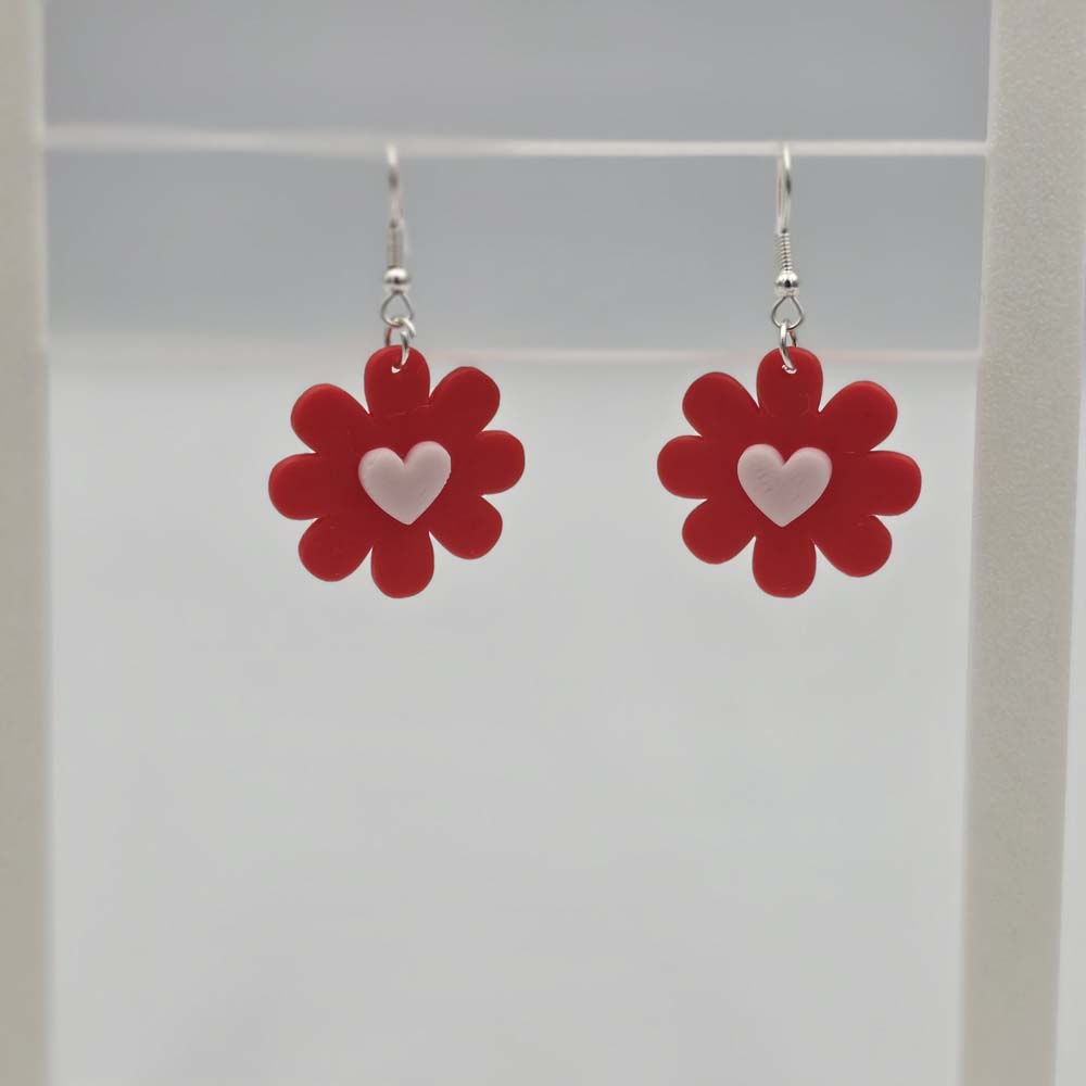 Each earring showcases a beautifully crafted flower with a lovely heart nestled in the center. Made from modern, lightweight PLA plastic, you’ll barely feel them on, making them ideal for everyday wear without any drag or discomfort. The best part? They are fully customizable! Design your perfect pair by choosing the color for the petals and the heart to match your favorite outfits, celebrate a special occasion, or create a thoughtful, personalized gift.